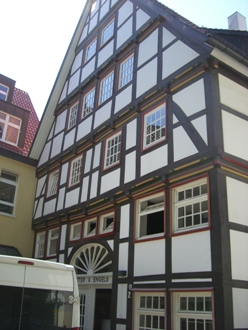 Anstriche von Außen –Holzfachwerk, die Schutz und Schmuck bieten und möglichst wenig einer Nachpflege bedürfen. Da Holzfachwerk besonders anfällig für Pilz und Insektenbefall ist, muss mittels einer intensiven Holzschutzmittelbehandlung das Holz und das Holzfachwerk geschützt werden. Dies geschieht mittels verschiedenartiger Beschichtungsmöglichkeiten: Heutige Verfahren: Für das Holzfachwerk sind deckende oder lasierende Holzbeschichtungen auszuwählen, die dünne, hoch wasserdampfdiffusionsfähige, nicht füllende und strukturerhaltende Beschichtungen ergeben. Sie sollen dünnschichtig aufgebracht werden, da in der Regel aufgrund der offenen Situation der Gefache im Anschlussbereich zum Putz eine Hinterfeuchtung mit Wasser nicht ausgeschlossen werden kann. Daher soll auf eine elastische Anschlussverfugung zwischen Holz und Gefache verzichtet werden. Es darf auf vorstehenden Putz zu keinem Wasserstau kommen. Die Putzkanten sollten daher idealer weise schräg auf das Holz zulaufen. An vorstehenden Holzkanten darf kein Wasser in die Wand eindringen, sowie in den Zapflöchern. Durch vermehrtes Beschichten des Holzes auf den vorhandenen Anstrichen wird die Diffusionsfähigkeit gemindert. Daher sollte bei abblätternden Anstrichen die Haftung überprüft werden und gegebenenfalls die Altbeschichtung entfernt werden. Dies kann durch mechanische Entfernung durch Schleifen, schonende Strahlverfahren oder durch spezielle Wirbelstrahlverfahren vorgenommen werden. Frühere Verfahren: Mit einer dünnen Leinölfirnissfarbe wird im Rahmen der Denkmalpflege das Holz beschichtet. Es muss auch entsprechend der zeitlichen Einstufung der Epoche braun, grau, schwarz, gelb, rot oder rotbraun gestrichen werden.