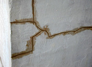 1.Das kraftschlüssige Verschließen (bei feinen Rissen Verschlämmen) von Rissen. Im Betonbereich wird der Riss mit speziellen zweikomponenten Werkstoffen verpresst. Putzrisse werden mit elastifizierten Spachtelmassen aufgefüllt. Feine Oberflächenrisse in Putzen, die nicht durch Wärme/Kälte beeinflusst sind, können mit Schlämmanstrichen oder Kratzspachtelungen zugeschlämmt bzw. gefüllt werden. Der kraftschlüssige Verschluss mit elastischen oder elastifizierten Spachtelmasse ersetzt nicht die Ausbildung einer Fuge und ist nicht in der Lage, dehnungs- oder baudynamische Risse dauerhaft zu sanieren. 2. Die Überbrückung von Rissen. Entsprechend den Rissursachen und dem damit verbundenen Verhalten von Rissen können elastifizierte Spachtelmassen mit Gewebearmierung zur Rissüberbrückung eingesetzt werden. Zum Verfüllen der Risse werden elastische Spachtelmassen verwendet. | ||
