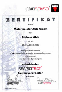 Malermeister Dietmar Ahle ist der erste Malermeister in Paderborn und Umgebung, der dieses Zertifikat erhalten hat.