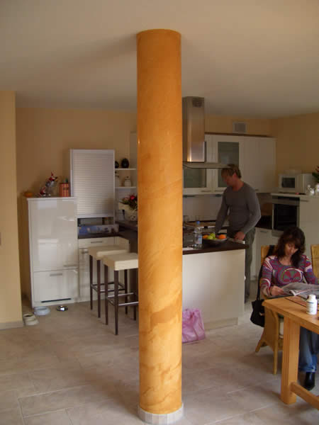 Die Stucco Lustro – Technik hat in Italien eine lange andauernde Tradition. Seit Jahrhunderten veredelt man dort Wände indem man mehrfach Schichten von Marmorputz aufträgt und nach Bedarf verpresst und glättet. Das Material hat sehr zeitgemäße technische Eigenschaften: Es ist diffusionsoffen, schimmelhemmend, antibakteriell, atmungsaktiv, spannungsaktiv, feuchtigkeitsresistent und schmutzempfindlich. Selbst Nikotingerüche werden aufgrund der Kalkeigenschaft abgebaut und sorgen für ein gesundes Raumklima. Durch seine Endbehandlung mit Seife ist das Material Wasserabweisend und kann im Badezimmerbereich anstelle von Fliesen oder Kacheln eingesetzt werden. Es hat sich herausgestellt das diese Technik hervorragend geeignet ist um einen ästhetischen Bezug zu unseren fugenlosen Zementböden zu bilden. Dabei können unsere geschulten Ahle Mitarbeiter in der Farbgebung und in der Geschlossenheit der Oberfläche ein breites Spektrum an Möglichkeiten anbieten. Sowohl matte offenporige Oberflächen als auch hochglänzend abgezogene Wandspachtelungen stehen Ihnen zur Auswahl. Gerne erstellen wir Ihnen individuelle Musterplatten in der Größe von 0,30 x 0,40 Meter als Unikate in Handarbeit für Ihre Wohnräume. | ||