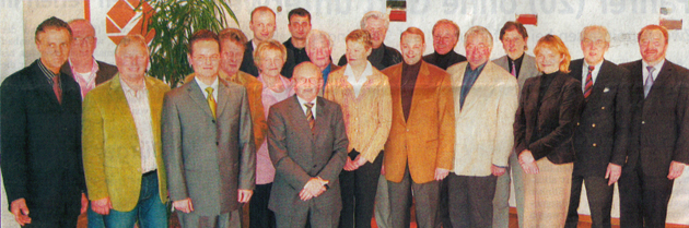 Bauherren, Innungsbetriebe, die beim Fassadenwettbewerb erfolgreich waren, zusammen mit Ausrichtern und Sponsoren. Alle Beteiligten freuten sich, dass die Veranstalltung viel Anerkennung erfahren hat und selbstverständlich fortgesetzt wird.