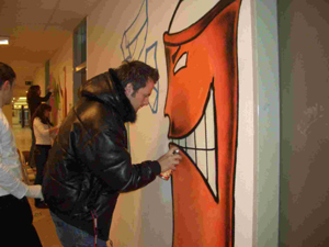 | Die öffentliche Meinung in Bezug auf Graffiti ist gespalten. Die eine Seite interpretiert Graffiti als ein Zeichen von Vandalismus, Anarchie und ebenso einen Angriff auf die Sauberkeit und Ordnung des Lebens im 20. Jahrhundert. Die andere Seite versteht das Phänomen Graffiti als kreative Tätigkeit mit einem kulturellen Hintergrund, die zur Identitätsfindung in einer individuellen Gesellschaft beiträgt. So entstand unser Thema, welches in der Vorbereitungszeit zur Schulentwicklung seine ersten Formen im letzen Schuljahr gefunden hat. Seit dieser Zeit haben sich immer mehr Jugendliche aus dem Kreis der Schule dafür interessiert, sich mit dem Thema Graffiti mehr als nur Farbschmierereien auseinander zu setzen. Unser Thema lautete seit dieser Zeit "Graffiti- von der Anarchie zur Galerie"