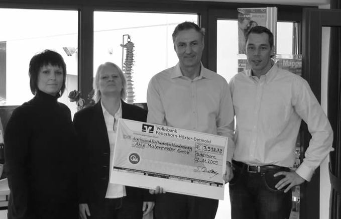 Freude bei Mitarbeitern und Betrieb: Mit dem Erreichen der Bonusstufe zwei im Gesundheitsförderungsprogramm der SIGNAL IDUNA IKK für Betriebe hat die Firma Ahle Malermeister in Paderborn nicht nur nachhaltig etwas für die Gesundheit getan sondern auch bares Geld erwirtschaftet. 20 IKK-versicherte Mitarbeiterinnen und Mitarbeiter erhalten nämlich einen halben Monatsbeitrag ihrer Krankenversicherung als Bonus zurück. Außerdem bekommt Firma Ahle mit dem Arbeitgeberbonus seine Investitionen in die Gesundheitsförderung zurückerstattet – das sind noch einmal rund 1.800 Euro.